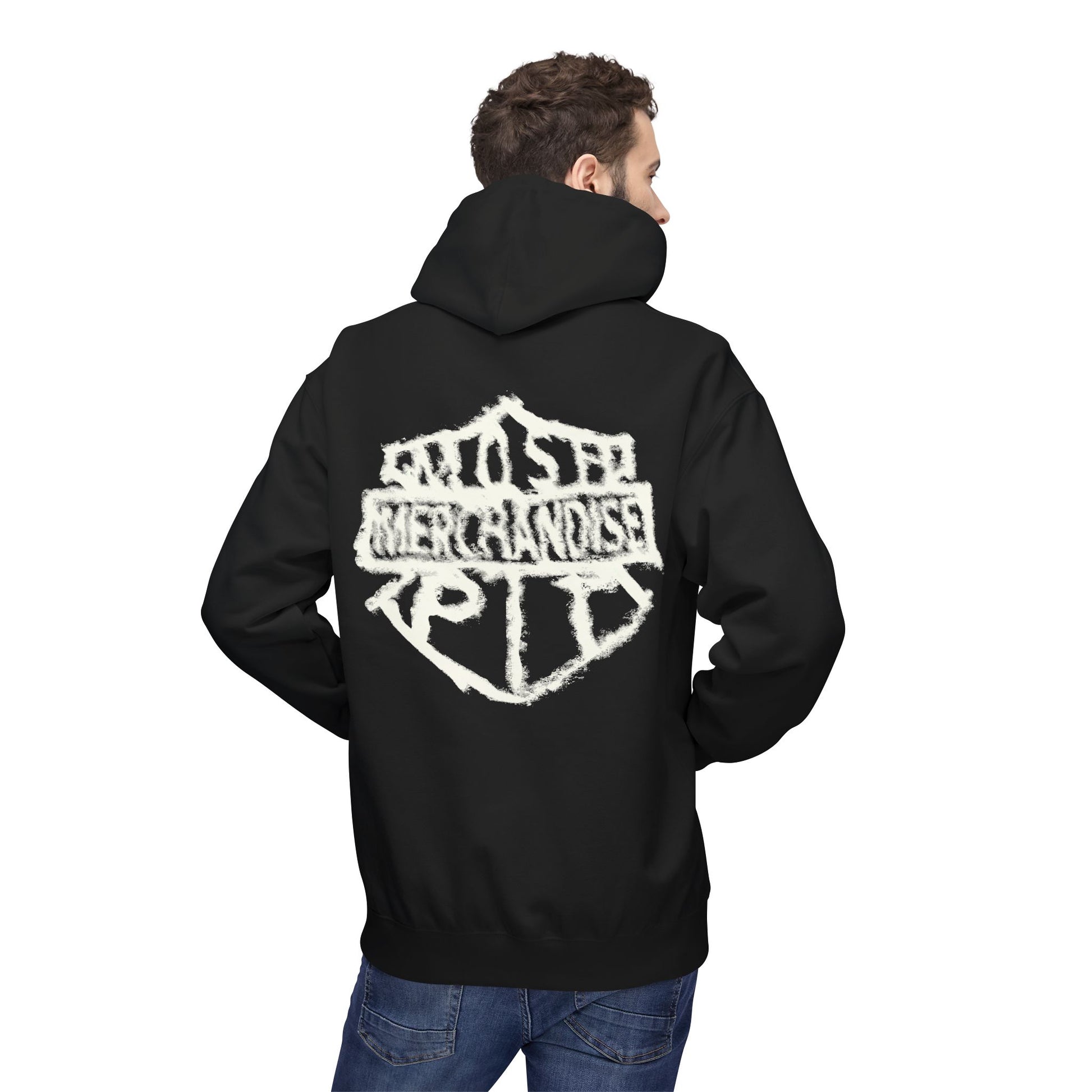 An edgy and grungy hoodie featuring a hand-drawn iron shield with a mad bull emblem on the front, perfect for fans of mosh pit merchandise. This midweight softstyle fleece hoodie offers added warmth and style, making it a versatile addition to any wardrobe. Ideal for those who love unique and bold streetwear, this hoodie is perfect for casual outings, concerts, and music festivals.