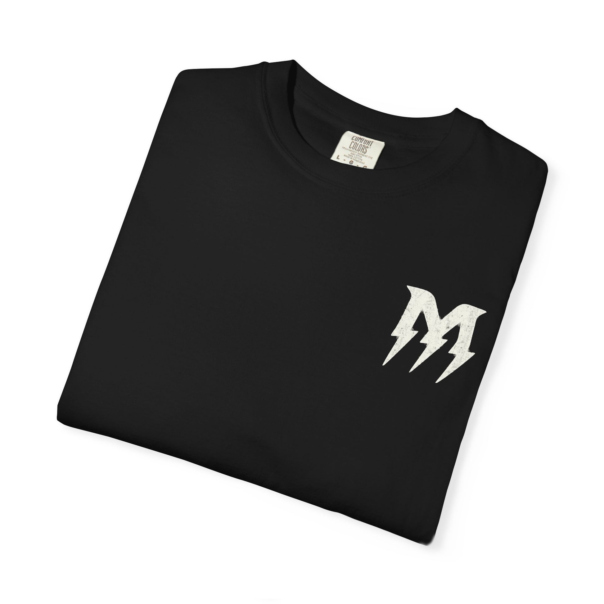 This relaxed, garment-dyed tee wears like an old favorite from the first wash. The soft, midweight cotton and broken-in texture give it a lived-in feel that suits late-night shows, muddied fields, and crowded basements. A compact lightning-monogram sits over the chest while the back delivers a rough, skull-and-bolts graphic with hand-rendered type — a look that reads loud without shouting. Throw it on before a long drive to a DIY venue, a weekend of record digging, or when you want an everyday shirt with a little edge.